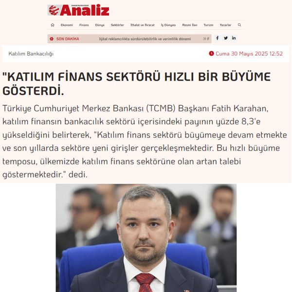 "KATILIM FİNANS SEKTÖRÜ HIZLI BİR BÜYÜME GÖSTERDİ.