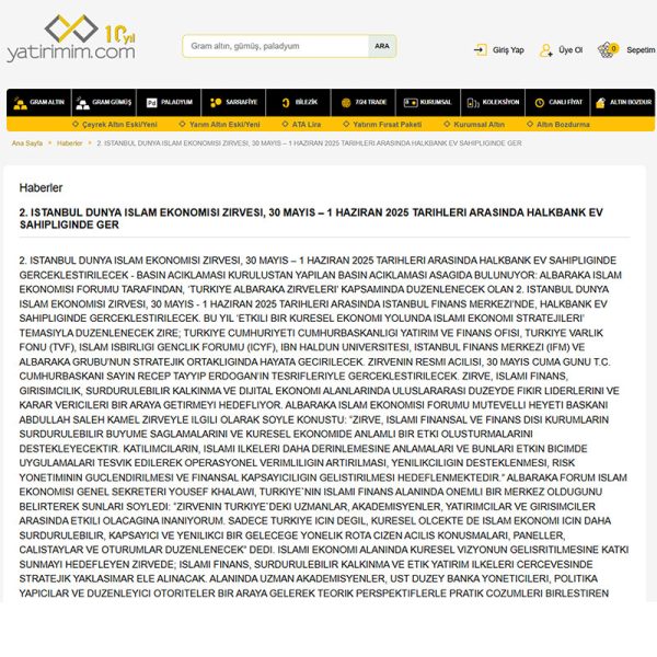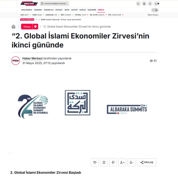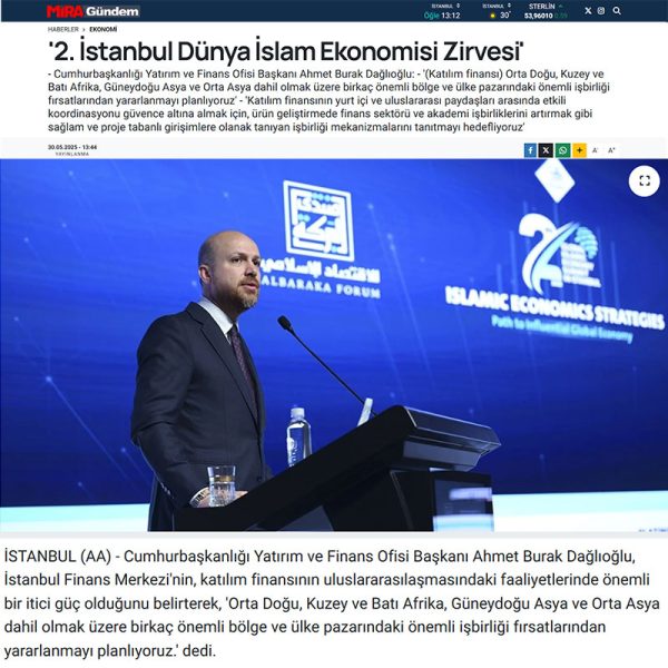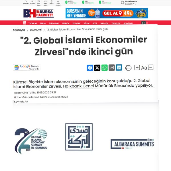2. ISTANBUL DUNYA ISLAM EKONOMISI ZIRVESI, 30 MAYIS – 1 HAZIRAN 2025 TARIHLERI ARASINDA HALKBANK EV SAHIPLIGINDE GER