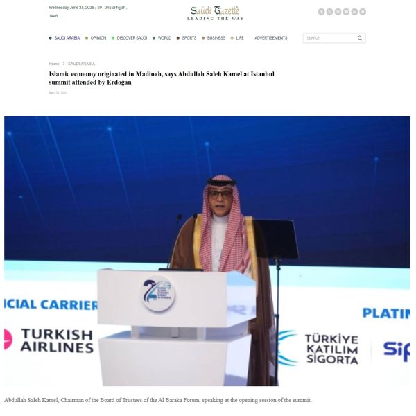 Islamic economy originated in Madinah, says Abdullah Saleh Kamel at Istanbul summit attended by Erdoğan