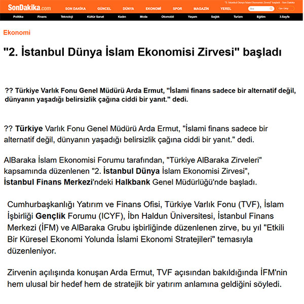 2nd Global Islamic Economy Summit in Istanbul - Media Coverage