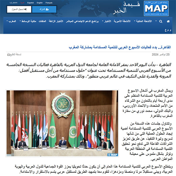القاهرة.. بدء فعاليات الأسبوع العربي للتنمية المستدامة بمشاركة المغرب - وكالة المغرب العربي للأنباء