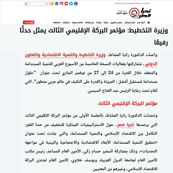 وزيرة التخطيط: مؤتمر البركة الإقليمي الثالث يمثل حدثًا رفيعًا - تحيا مصر