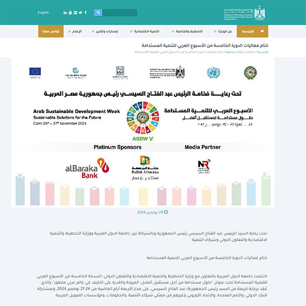 ختام فعاليات الدورة الخامسة من الأسبوع العربي للتنمية المستدامة - وزارة التخطيط والتنمية الاقتصادية و التعاون الدولي