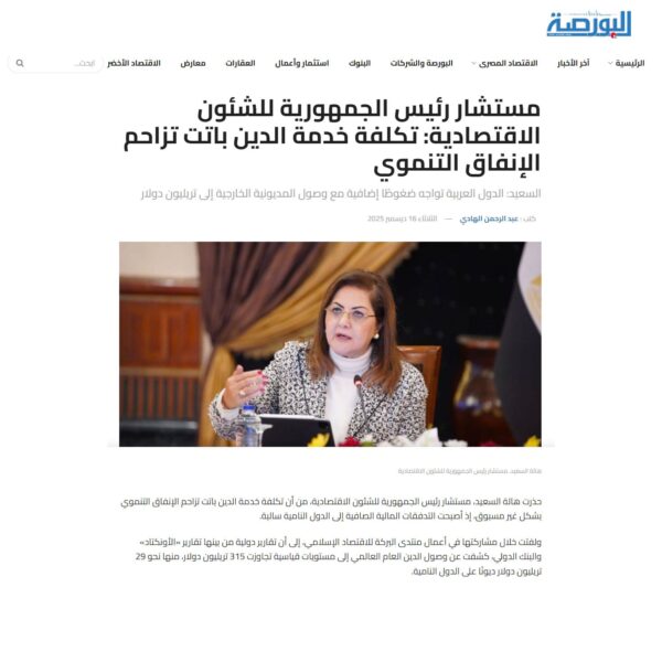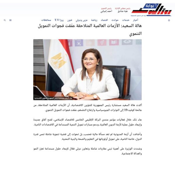 هالة السعيد: الأزمات العالمية المتلاحقة عمّقت فجوات التمويل التنموي