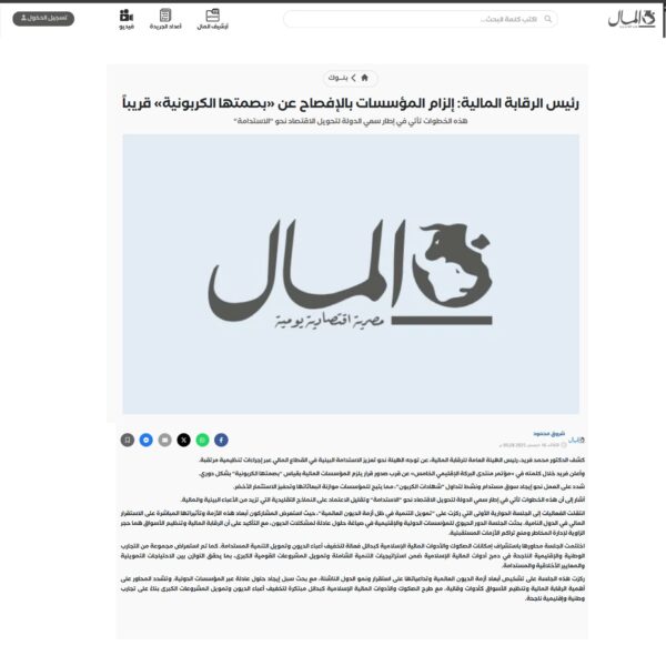 رئيس الرقابة المالية: إلزام المؤسسات بالإفصاح عن «بصمتها الكربونية» قريباً