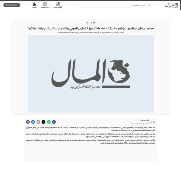 محمد جمال إبراهيم: مؤتمر «البركة» منصة لتعزيز التعاون العربي وتقديم نماذج تمويلية مبتكرة