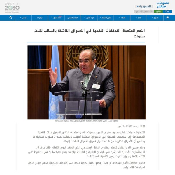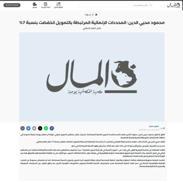 محمود محيي الدين: المحددات الإنمائية المرتبطة بالتمويل انخفضت بنسبة 7%