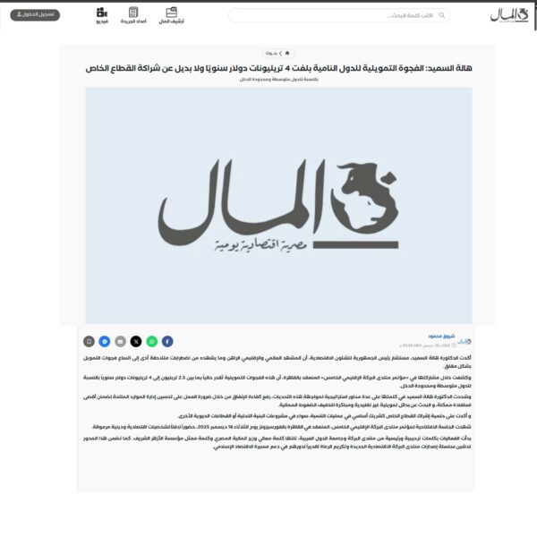الفجوة التمويلية العالمية لتمويل التنمية المستدامة بلغت 4 تريليونات دولار سنويًا