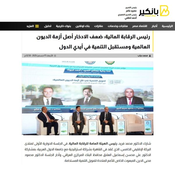 رئيس الرقابة المالية: ضعف الادخار أصل أزمة الديون العالمية ومستقبل التنمية في أيدي الدول
