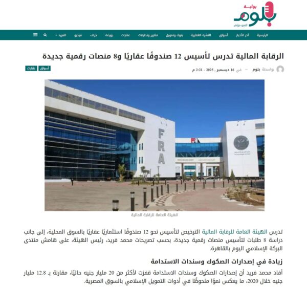 الرقابة المالية تدرس تأسيس 12 صندوقًا عقاريًا و8 منصات رقمية جديدة