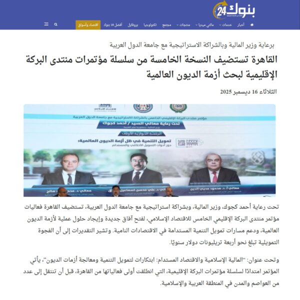 القاهرة تستضيف النسخة الخامسة من سلسلة مؤتمرات منتدى البركة الإقليمية لبحث أزمة الديون العالمية