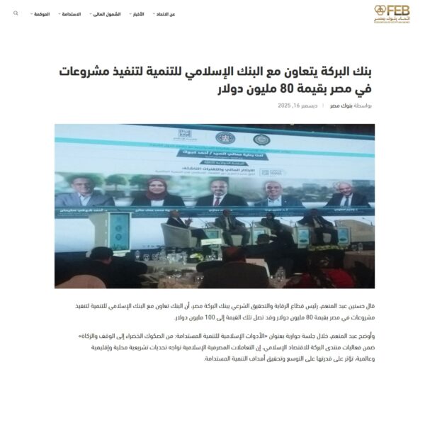 بنك البركة يتعاون مع البنك الإسلامي للتنمية لتنفيذ مشروعات في مصر بقيمة 80 مليون دولار
