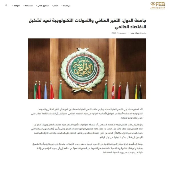 جامعة الدول: التغير المناخي والتحولات التكنولوجية تعيد تشكيل الاقتصاد العالمي