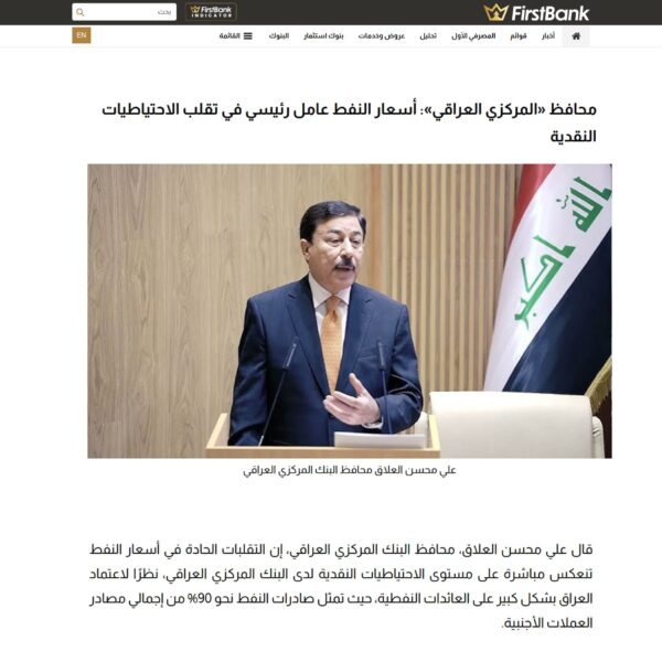 محافظ «المركزي العراقي»: أسعار النفط عامل رئيسي في تقلب الاحتياطيات النقدية