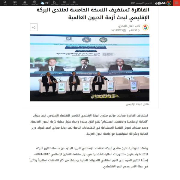 القاهرة تستضيف النسخة الخامسة من منتدى البركة الإقليمي لبحث أزمة الديون العالمية