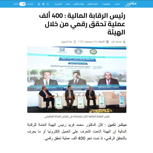 رئيس الرقابة المالية : 400 ألف عملية تحقق رقمي من خلال الهيئة