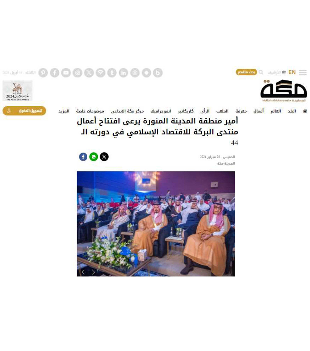 أمير منطقة المدينة المنورة يرعى افتتاح أعمال منتدى البركة للاقتصاد الإسلامي في دورته الـ 44