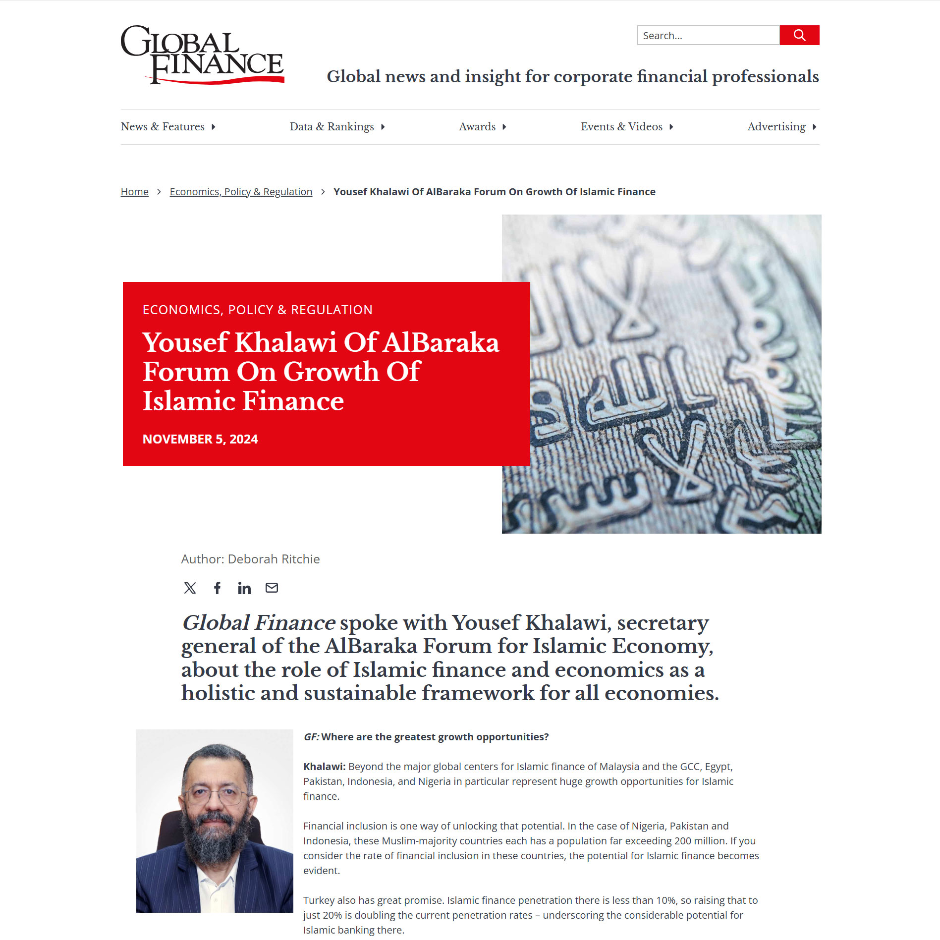 Yousef Khalawi Of AlBaraka Forum On Growth Of Islamic Finance - By Global Finance