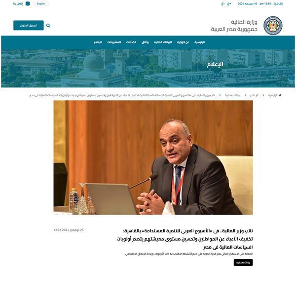 نائب وزير المالية.. فى «الأسبوع العربي للتنمية المستدامة» بالقاهرة: تخفيف الأعباء عن المواطنين وتحسين مستوى معيشتهم يتصدر أولويات السياسات المالية فى مصر - وزارة المالية - جمهورية مصر العربية