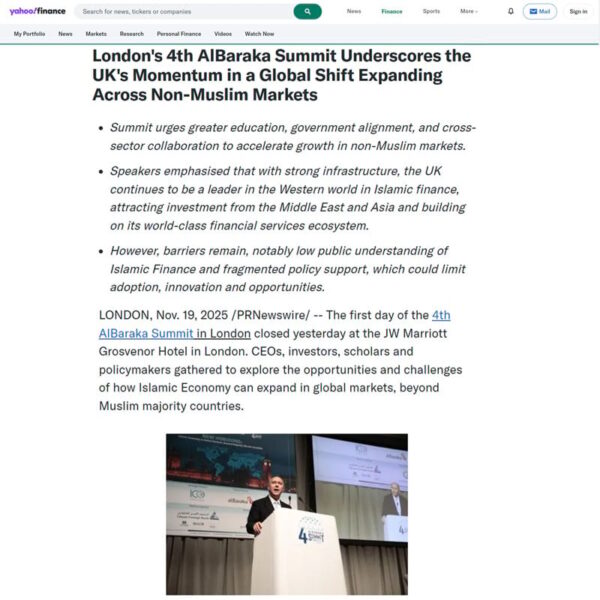 Yahoo Finance - London's 4th AlBaraka Summit Underscores the UK's Momentum in a Global Shift Expanding Across Non-Muslim Markets