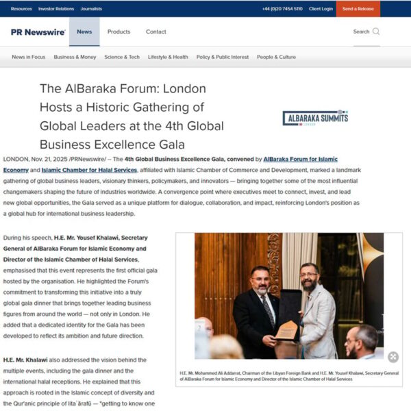 PR Newswire - The AlBaraka Forum: London Hosts a Historic Gathering of Global Leaders at the 4th Global Business Excellence Gala