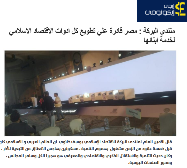 منتدي البركة مصر قادرة علي تطويع كل ادوات الاقتصاد الاسلامي لخدمة ابنائها