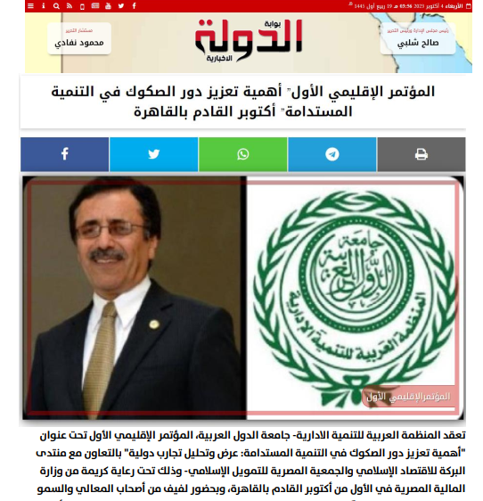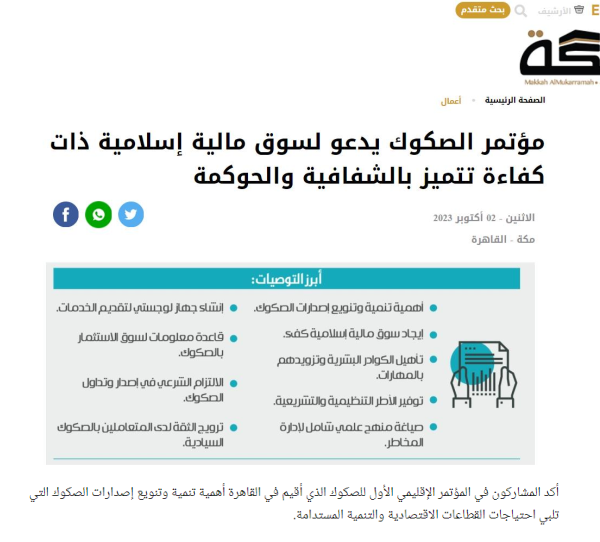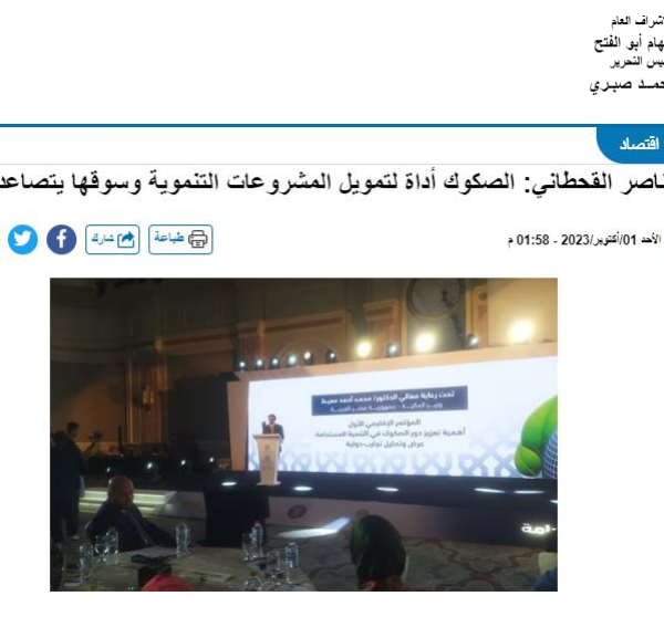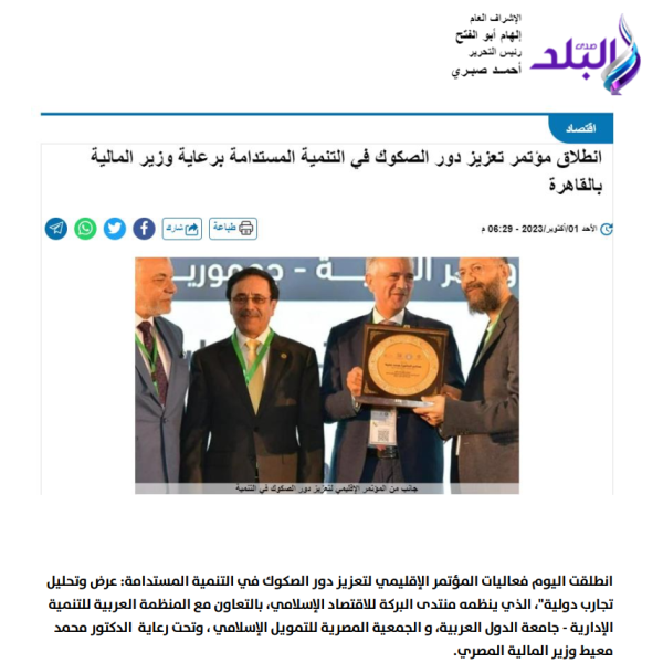 أكتوبر القادم المؤتمر الإقليمي الأول بعنوان أهمية تعزيز دور الصكوك في التنمية المستدامة
