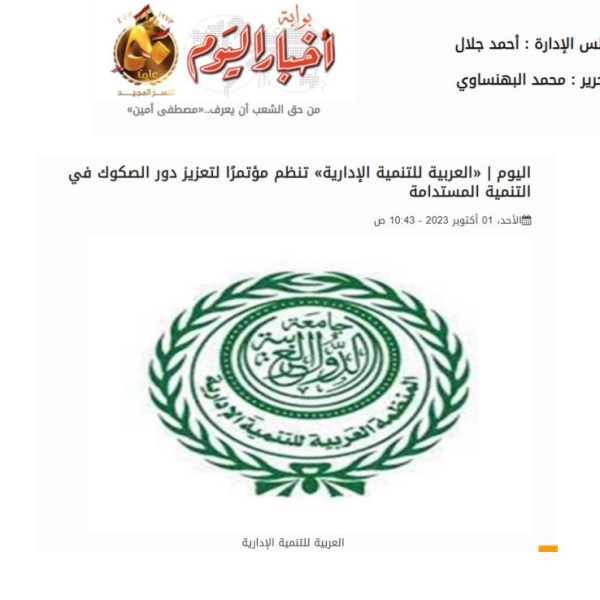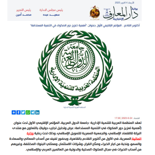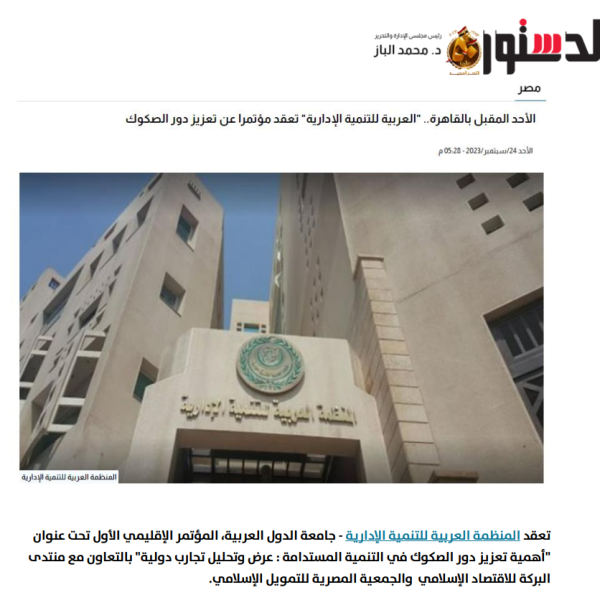 اليوم العربية للتنمية الإدارية تنظم مؤتمرًا لتعزيز دور الصكوك في التنمية المستدامة