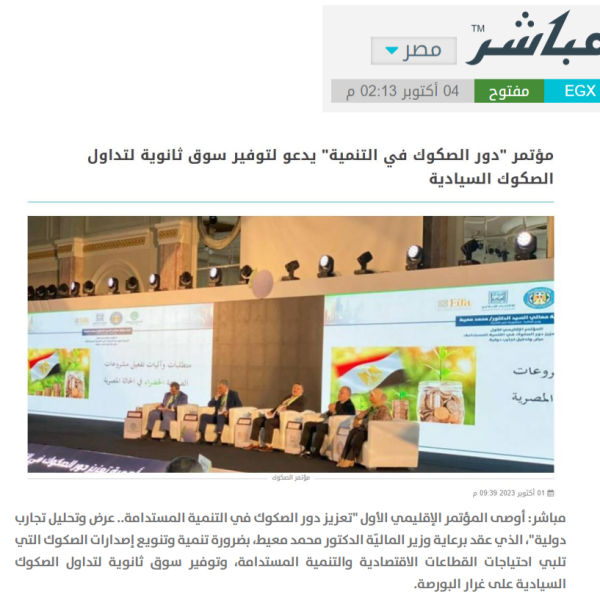 انطلاق المؤتمر الإقليمي الأول حول أهمية تعزيز دور الصكوك في التنمية المستدامة بمصر