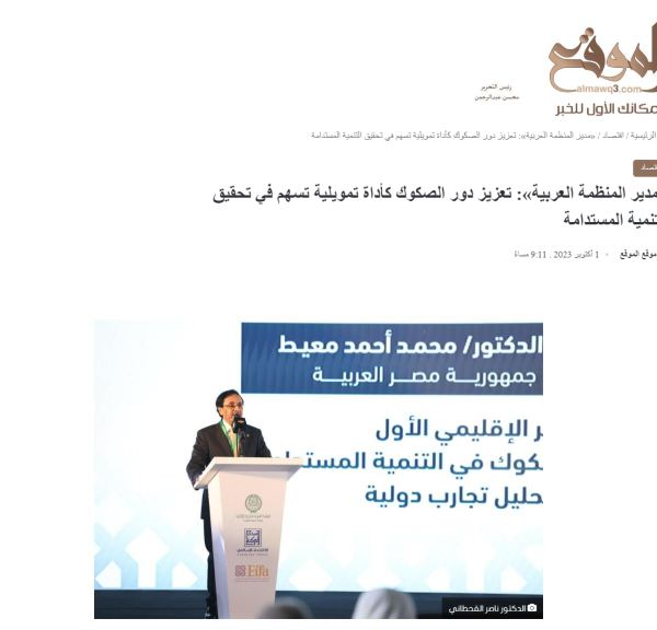 مدير المنظمة العربية تعزيز دور الصكوك كأداة تمويلية تسهم في تحقيق التنمية المستدامة