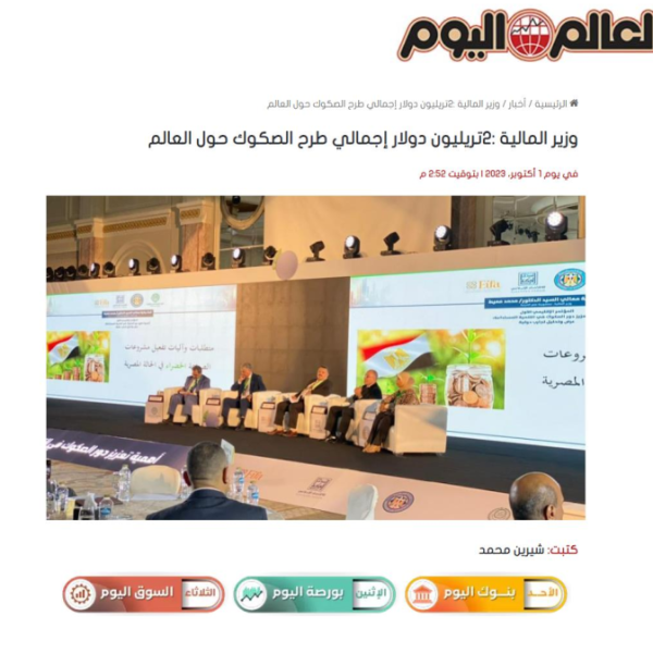 انطلاق مؤتمر تعزيز دور الصكوك في التنمية المستدامة برعاية وزير المالية المصري