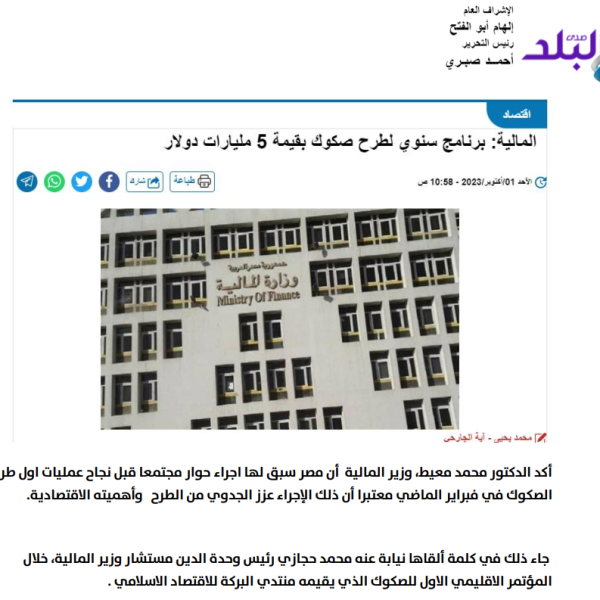 5 مليارات دولار.. قيمة البرنامج السنوي لطروحات الصكوك في مصر