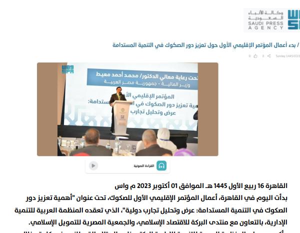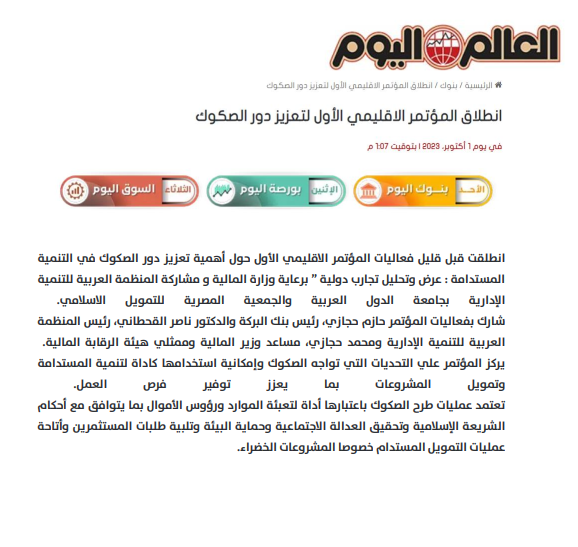 تغطية خاصة لفعاليات المؤتمر الإقليمي الأول وأهمية تعزيز دور الصكوك في التنمية المستدامة