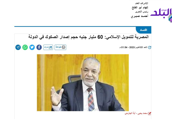 المصرية للتمويل الإسلامي 60 مليار جنيه حجم إصدارات الصكوك في مصر
