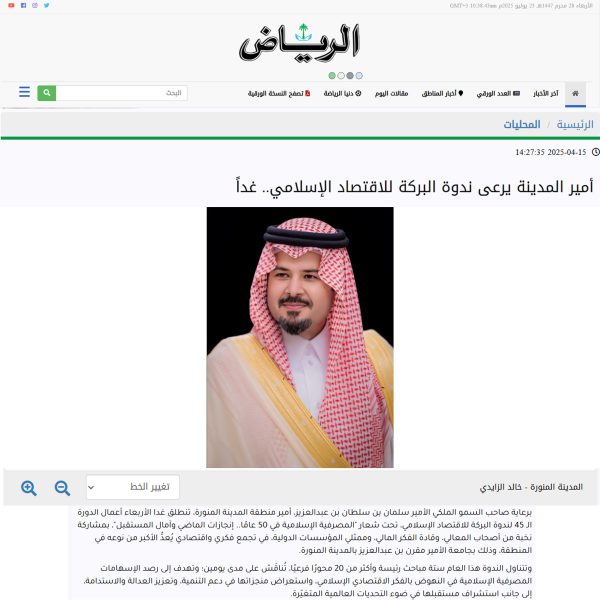 Madinah Governor Inaugurates 45th AlBaraka Islamic Economics Symposium