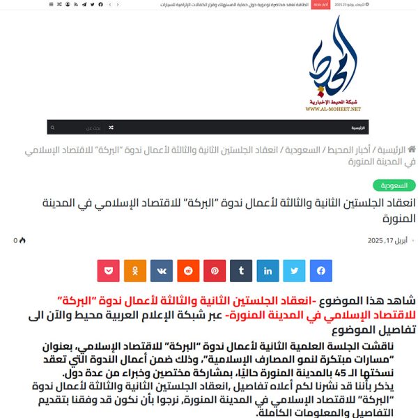 منتدى البركة للاقتصاد الإسلامي بالمدينة المنورة ينظم ورشتيّ عمل ضمن فعاليات ندوة البركة