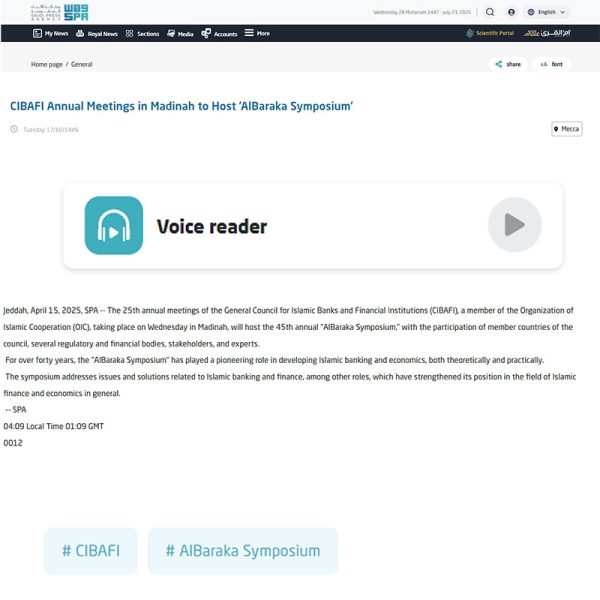 CIBAFI Annual Meetings in Madinah to Host ‘AlBaraka Symposium’