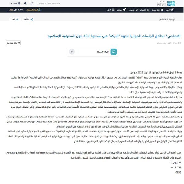 انطلاق الجلسات الحوارية لندوة "البركة" في نسختها الـ45 حول المصرفية الإسلامية