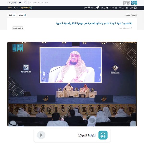برعاية أمير منطقة المدينة المنورة.. انطلاق أعمال الدورة الـ 45 لندوة البركة للاقتصاد الإسلامي غدًا