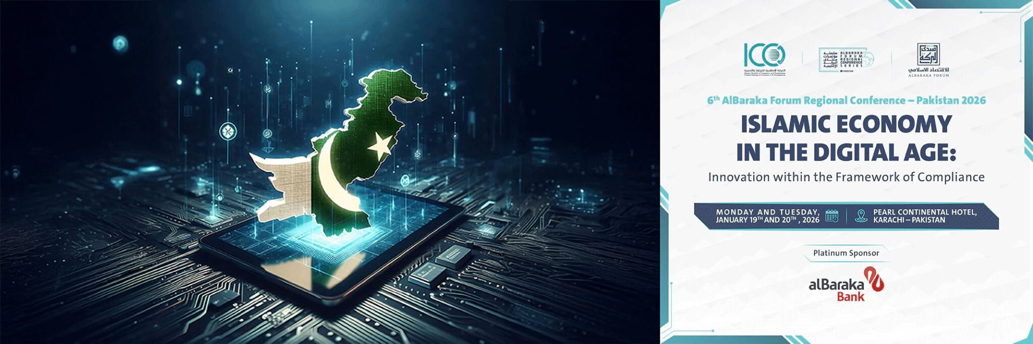 The 6th AlBaraka Forum Regional Conference – Pakistan commenced in Karachi on Monday and Tuesday, 19th and 20th January 2026, under the theme “Islamic Economy in the Digital Age: Innovation within the Framework of Compliance.” The conference was held at Pearl Continental – Karachi, in Collaboration with the Islamic Chamber of Commerce & Development (ICCD), with Platinum Sponsorship from Al Baraka Bank Pakistan Ltd., and brought together senior policymakers, regulators, banking leaders, Shariah experts, scholars, and technology experts.